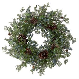 26.25 Inch Mixed Greens Wreath w/Glittered Pinecones