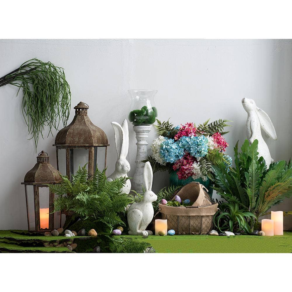 With its long ears,inquisitive look,and crisp white finish,this Medium Rabbit Figurine makes a cheerful addition to any room.Feature this curious fellow in a lush sunroom,white farmhouse kitchen,or on a front porch to create a whimsical display to welcome and delight family and friends.Durable magnesium construction ensures years of charm and beauty in any indoor or outdoor space.