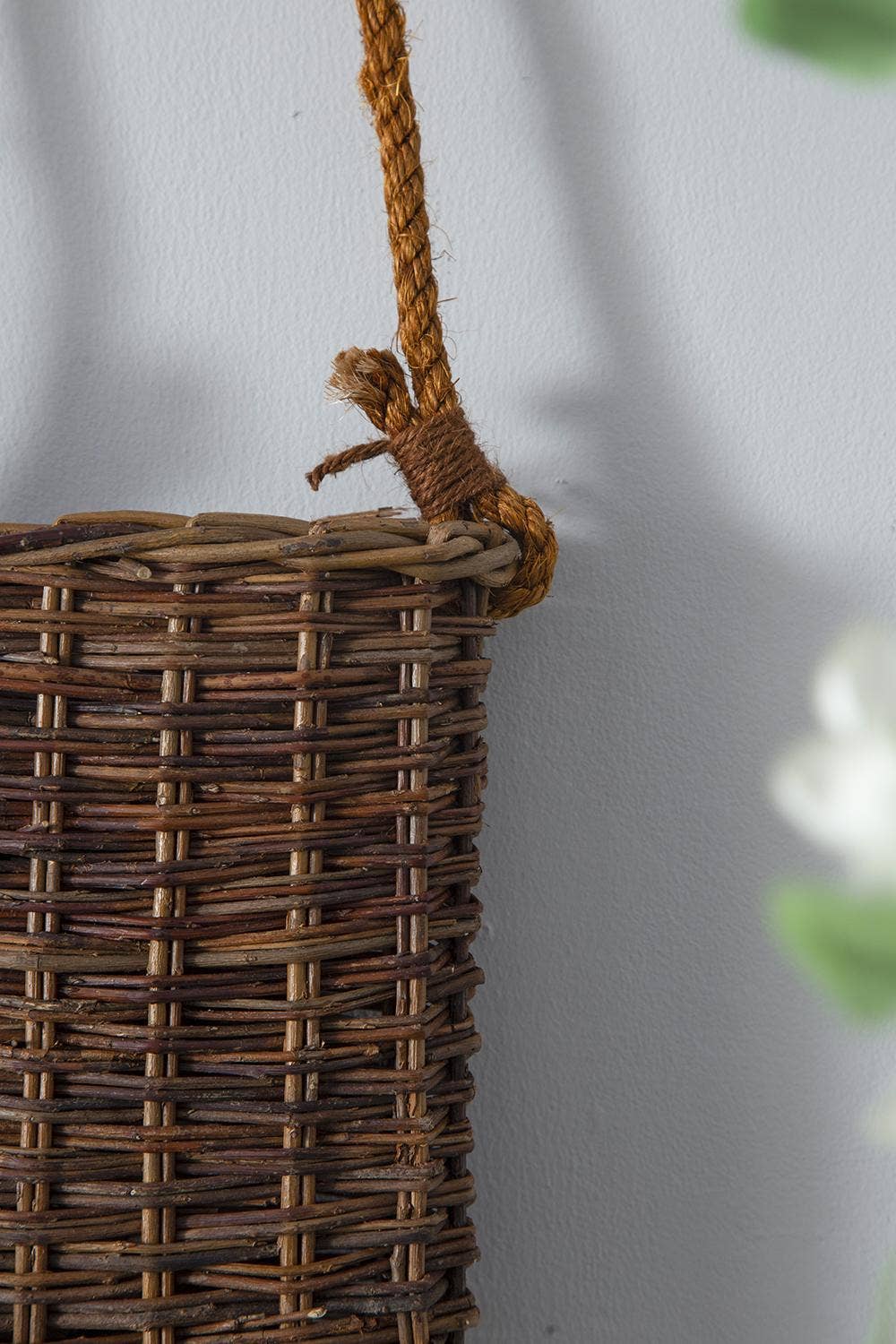 Woven from willow branches, this small basket offers lovely cottage style and almost endless uses around the home. Fill with branches or flowers as a cheerful welcome on the front door, use to stash magazines in a bathroom, or display cooking utensils safely but conveniently in the kitchen. However it is used, this small hanging basket adds a rustic charm and timeless warmth to your space.