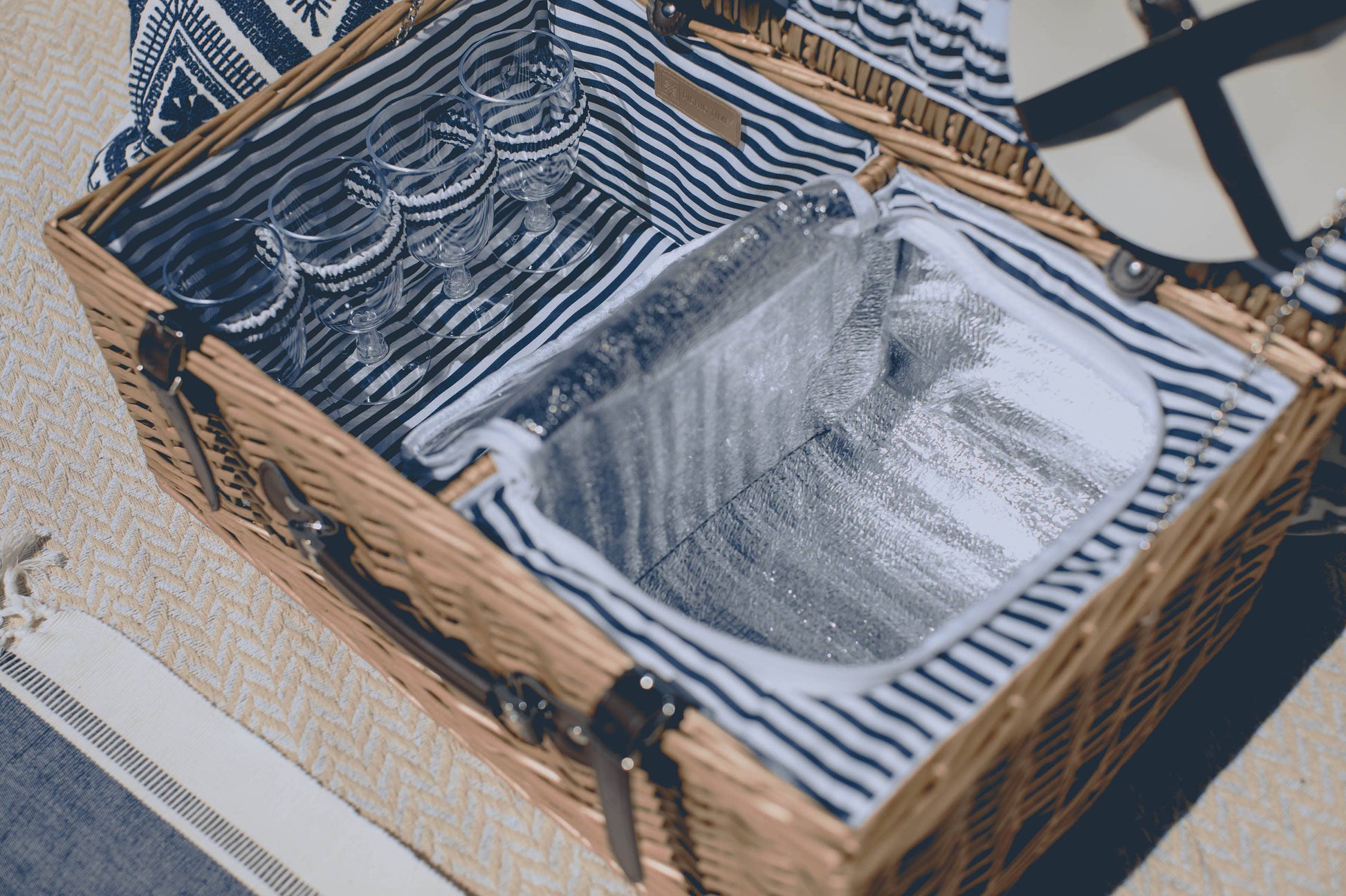 Belmont Picnic Basket: Navy Blue & White Stripe