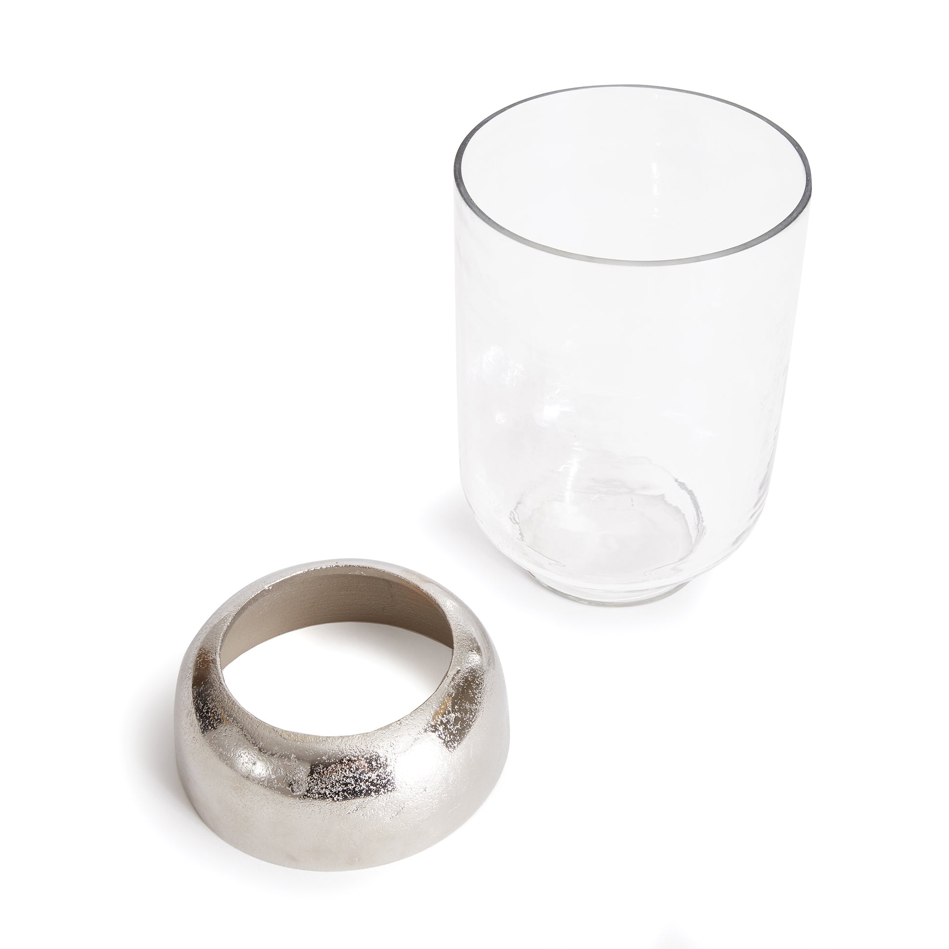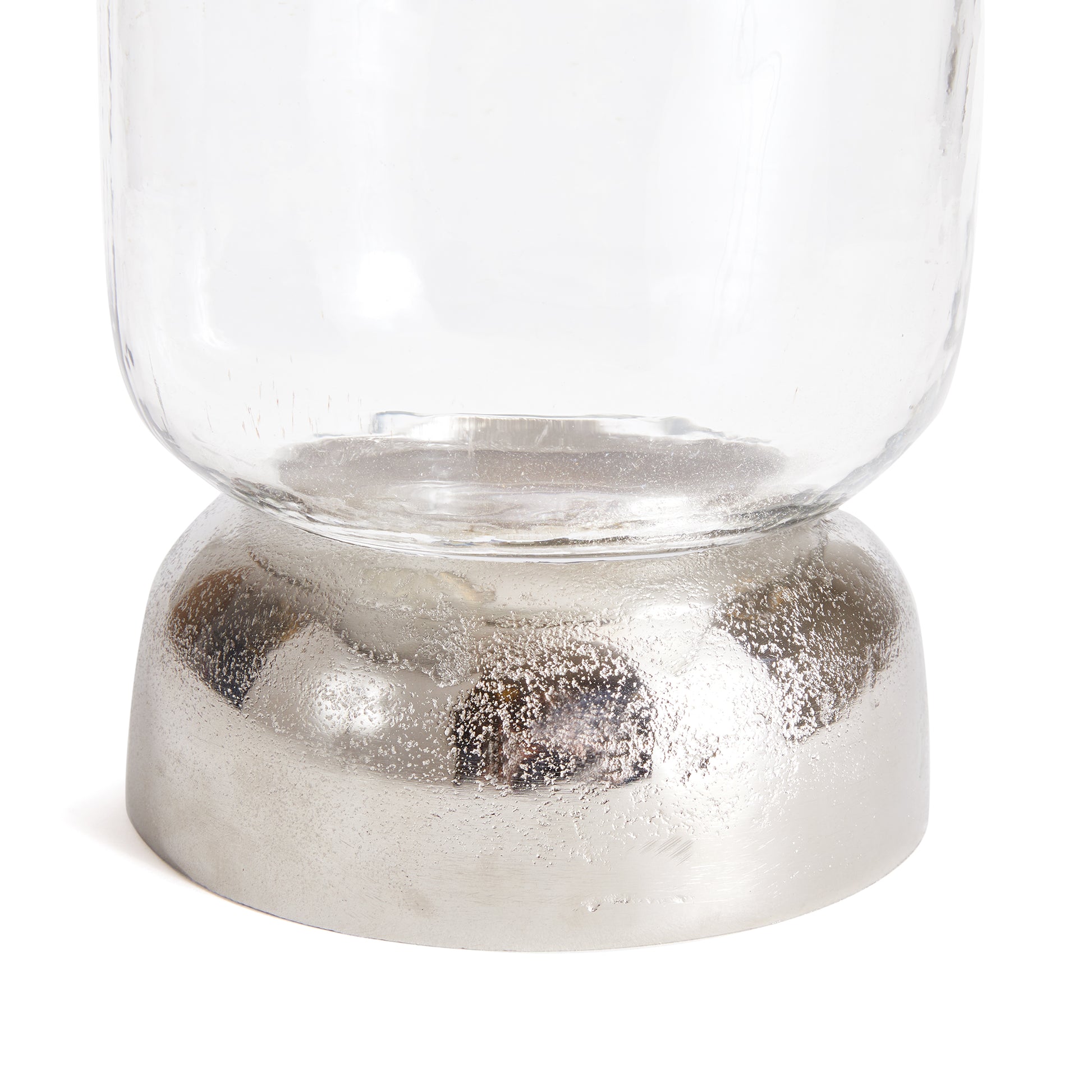 With a cool chrome finish and a domed base, this hurricane is a fresh accent for dining table, console or bookshelf. The hammered glass is sure to naturally enhance a candle's glow.