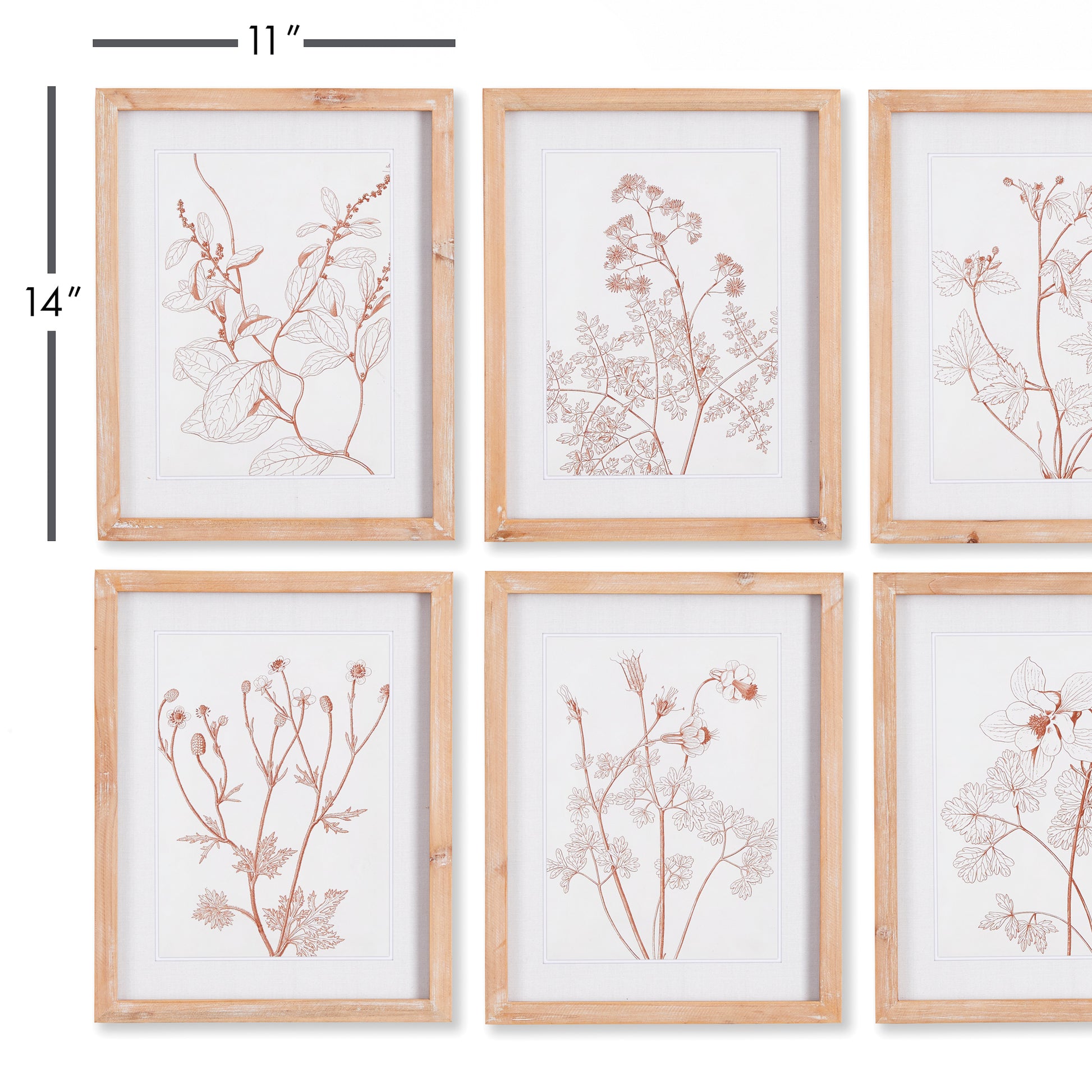 Illustrated in a minimalist style, these blush botanicals celebrate simple forms in nature. Complete with a light whitewashed frame, a nice way to add a feminine touch to bedroom, kitchen or home office.