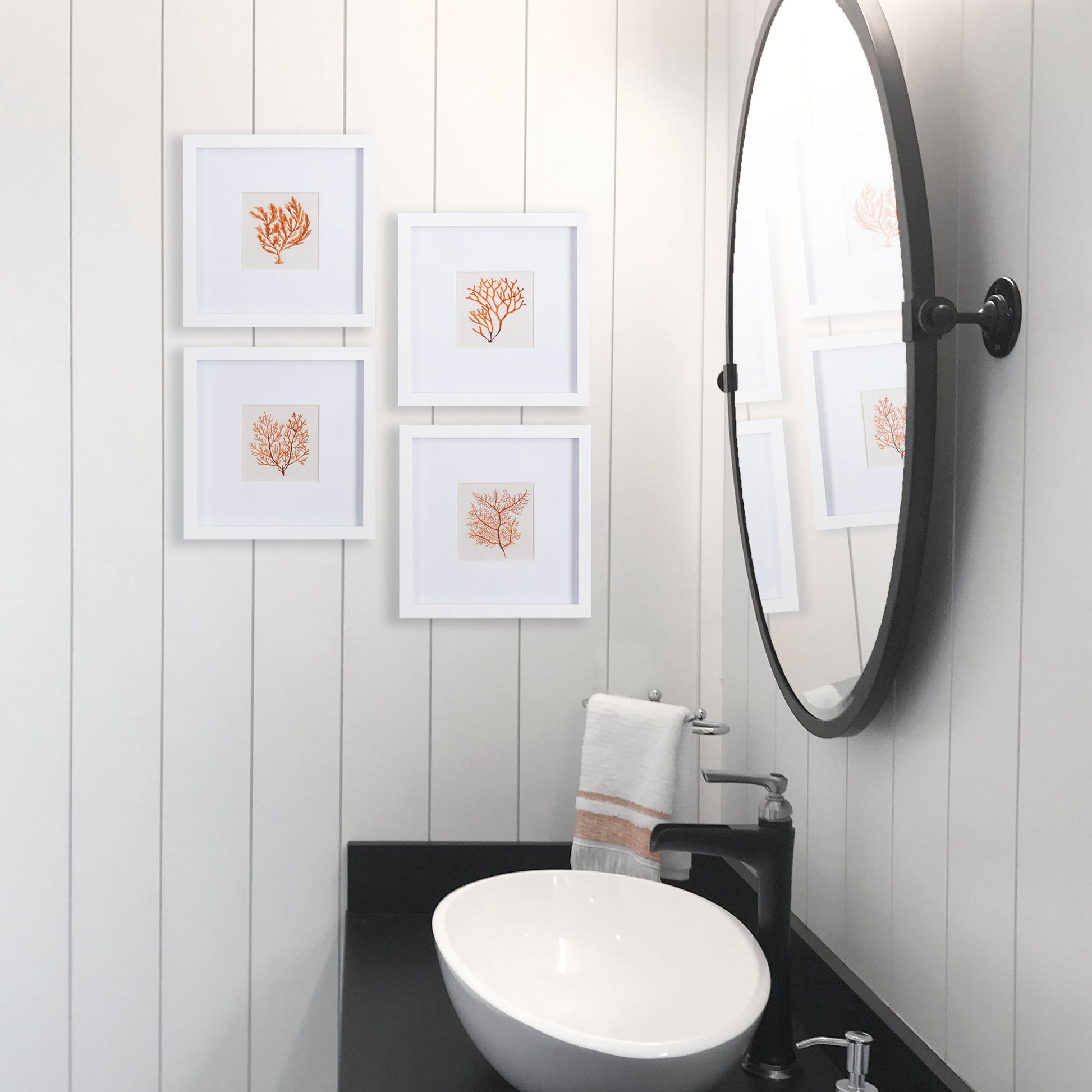 These little coral illustrations are a sophisticated way to add a coastal vibe. Framed out in a simple white profile, they work beautifully tucked into a bookshelf, or in a powder room.