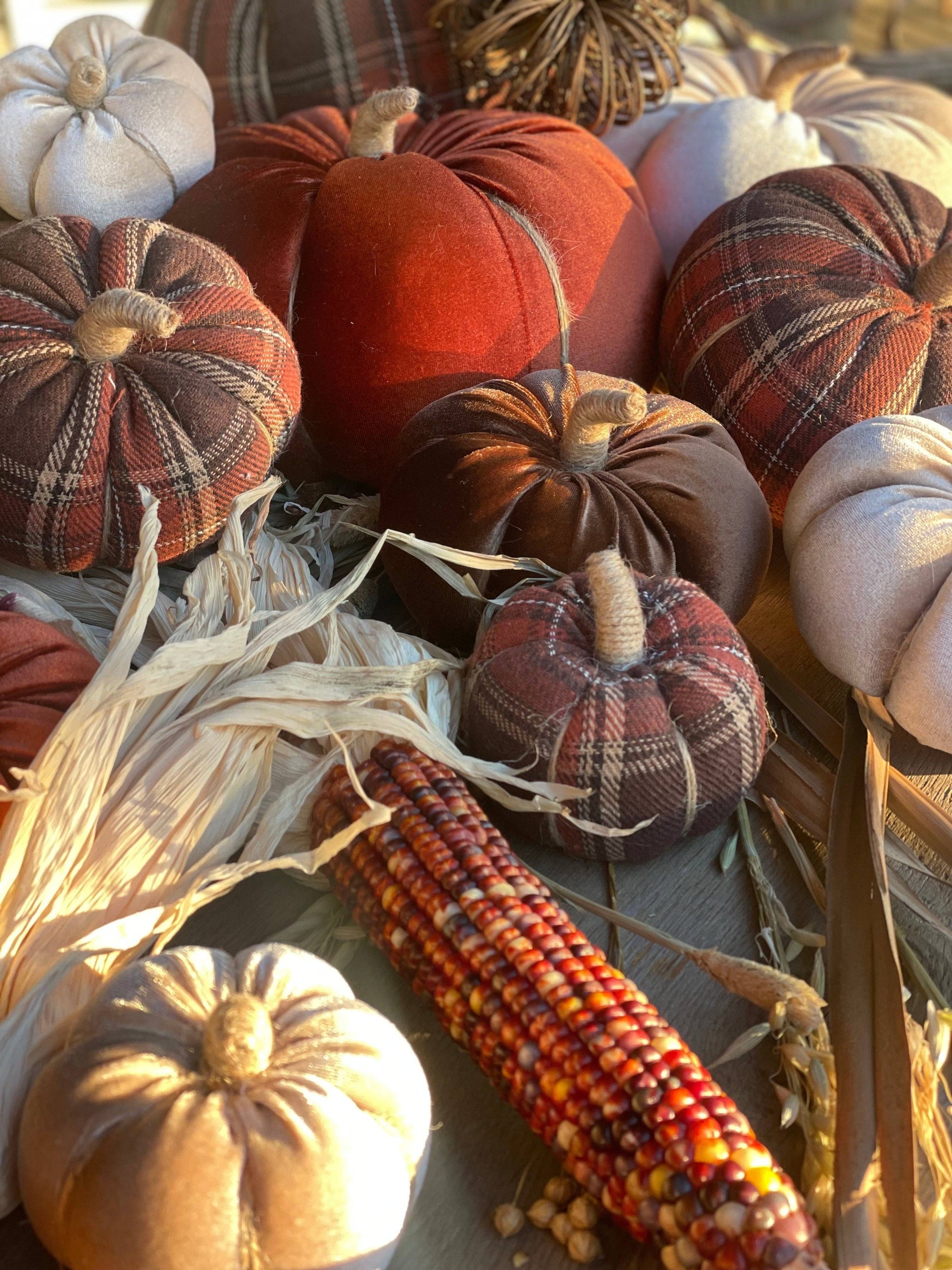 XL Harvest Plaid Fall Fabric Pumpkin