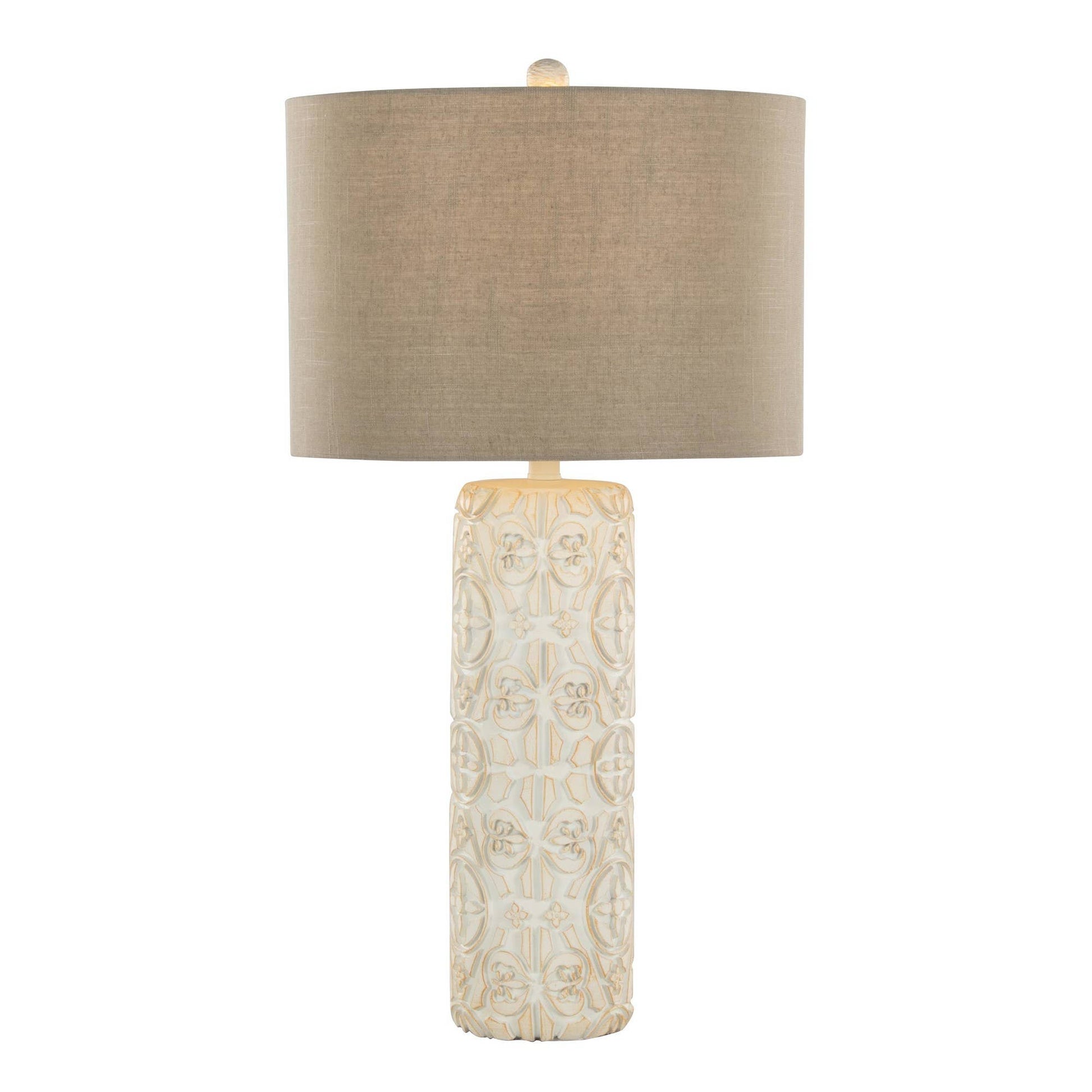 Add eye-catching style to your space with the gorgeous Charlotte Table Lamp from Grandview Gallery by LumiSource. The cylindrical polyresin base features an intricately carved pattern, a matching finial, and a linen drum shade. This is a beautiful piece will illuminate any space in your home!