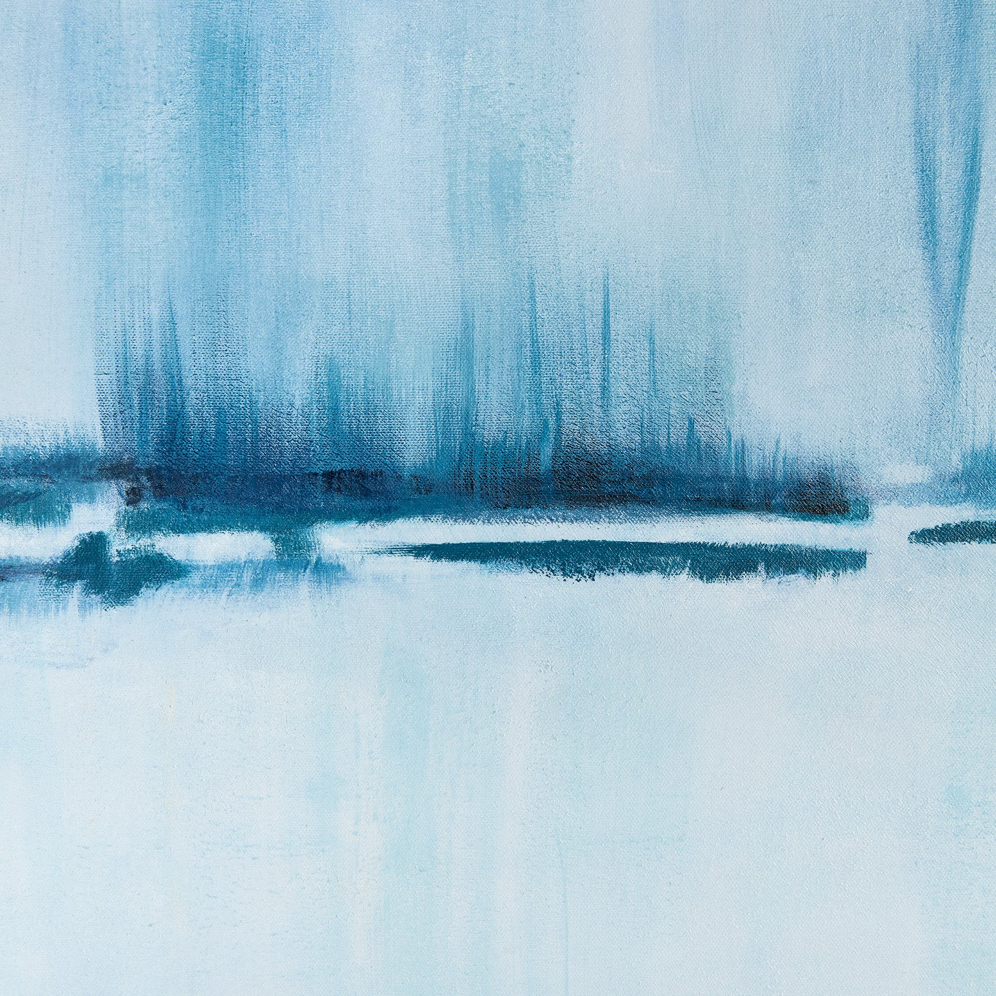 Like a misty morning out on the water, this large-scale giclee on canvas is a serene composition in monochrome tones. Hand-embellished highlights with touches of paint creates a rich texture and depth. Finished off beautifully in a frame with spacer, allowing the sides of the printed canvas to show.