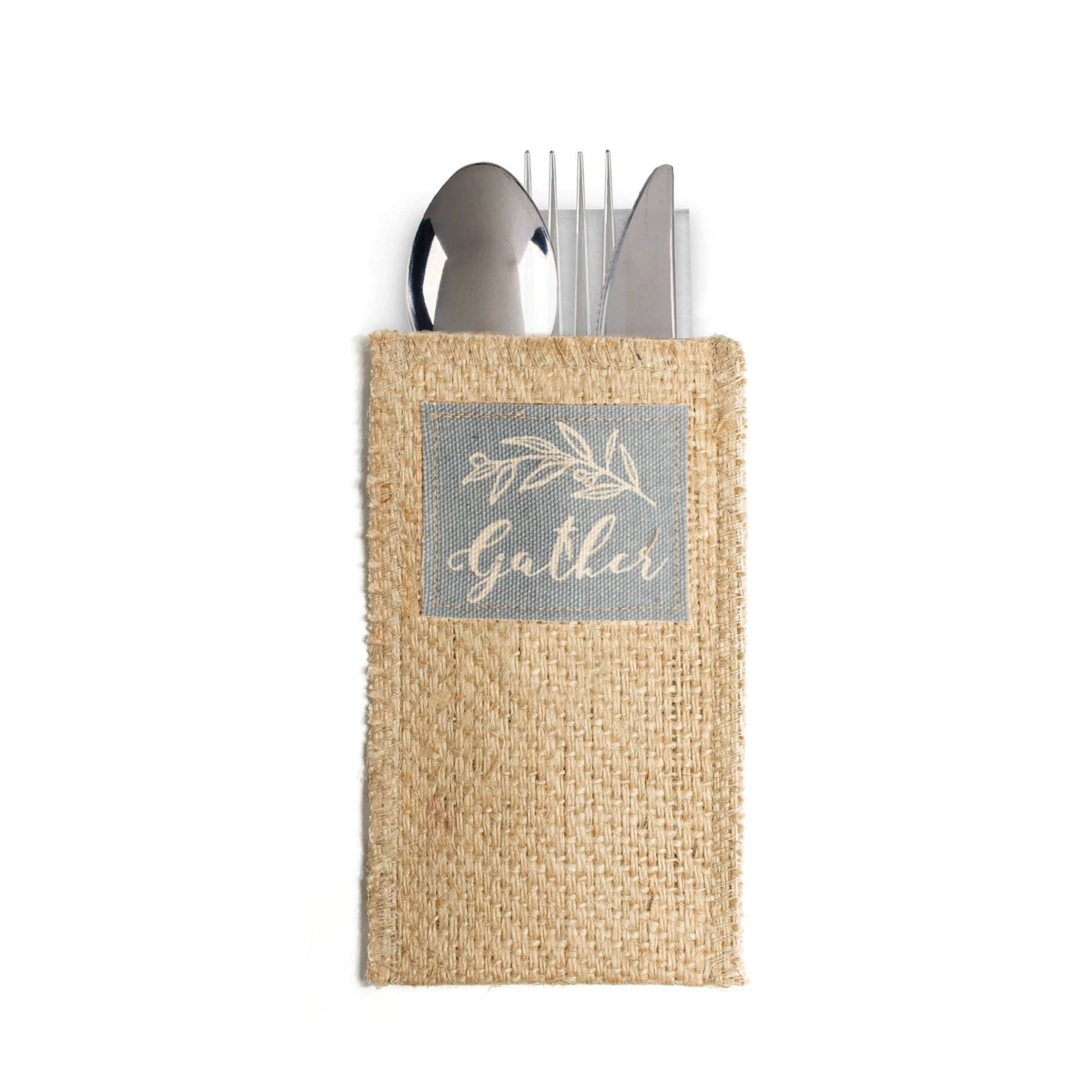 Autumn is all about getting together from Back-to-School luncheons to tailgates to Thanksgiving Feasts; bringing friends and family together is always a cause for celebration! Package includes 8 woven jute pouches with a screen-printed gather message on a canvas patch. cloth napkin, cotton napkin, napkins, cutlery couture, silverware, home decor, gifts, spring, beach, garden 4th of July, Mother's Day.