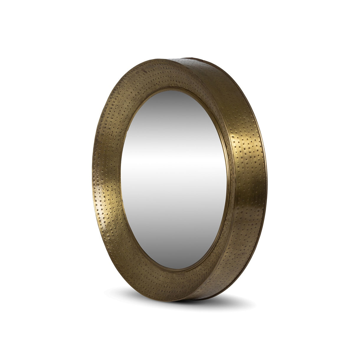 Hammered Iron Brass Portal Mirror | Round Brass Wall Accent