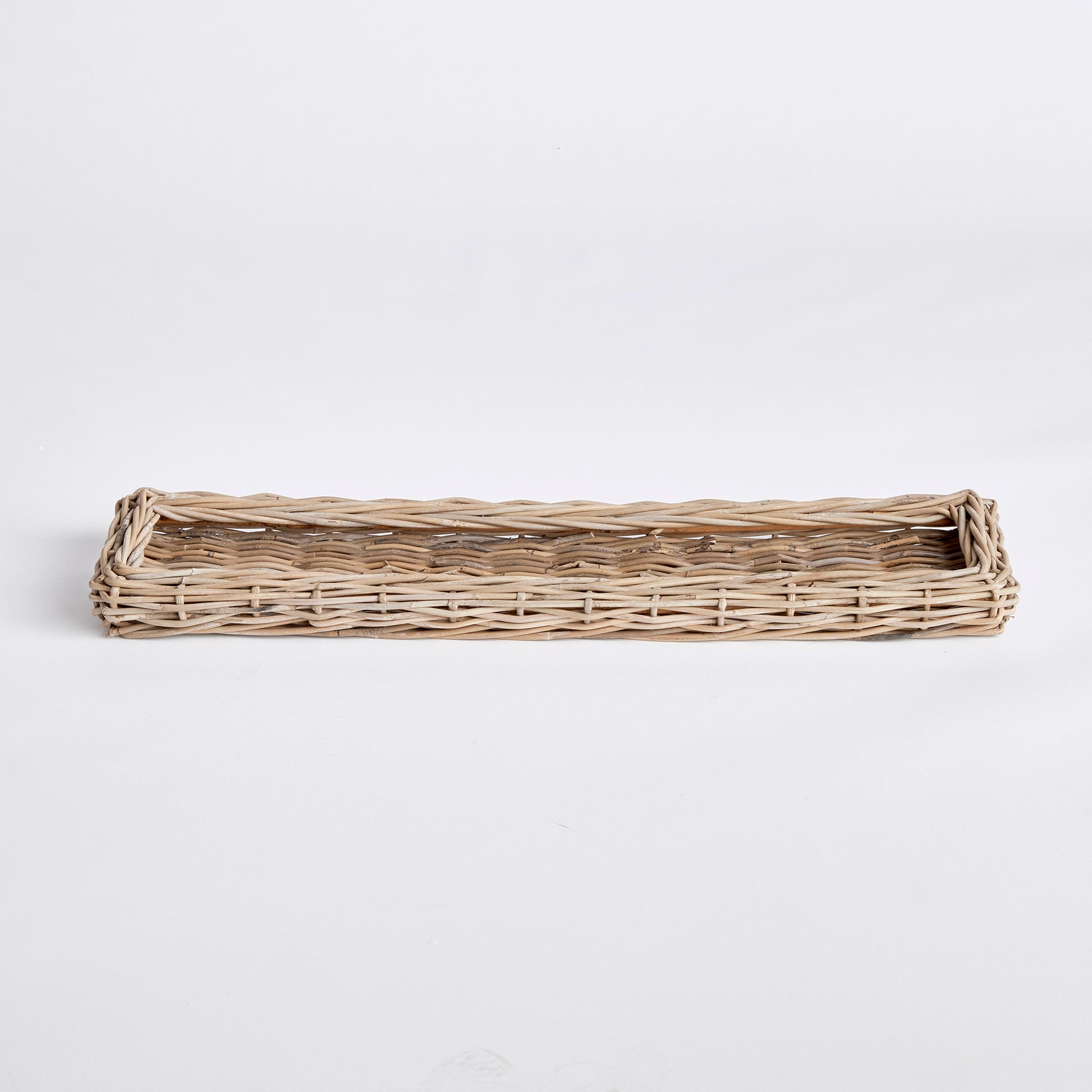 Made of a large gauge rattan, this extra long tray makes a beautiful centerpiece. Fill it with orbs, faux flower stems or leave it just as is for a clean look.