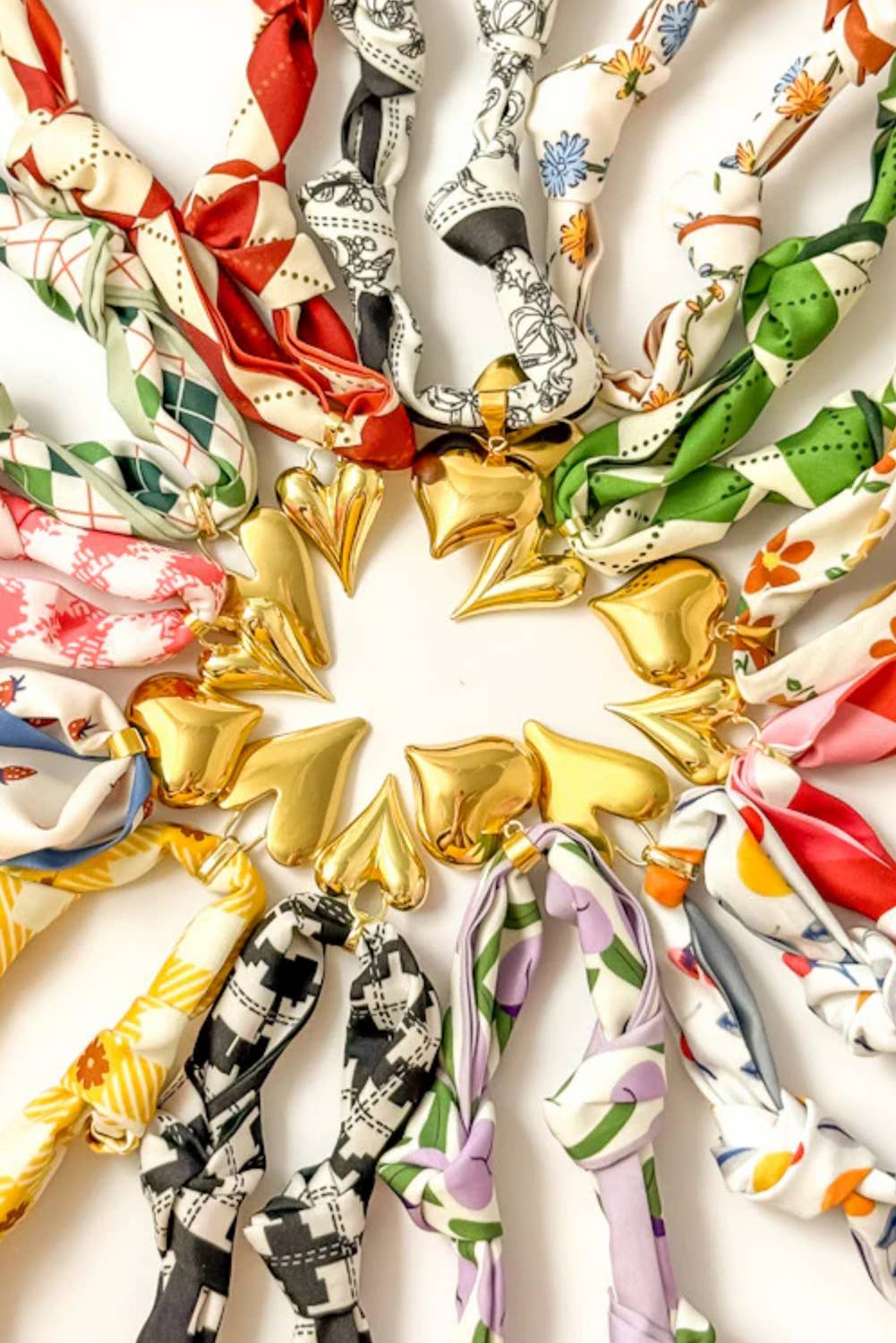 LDC Floral Print Scarf Knotted Gold Heart Charm Necklace: White