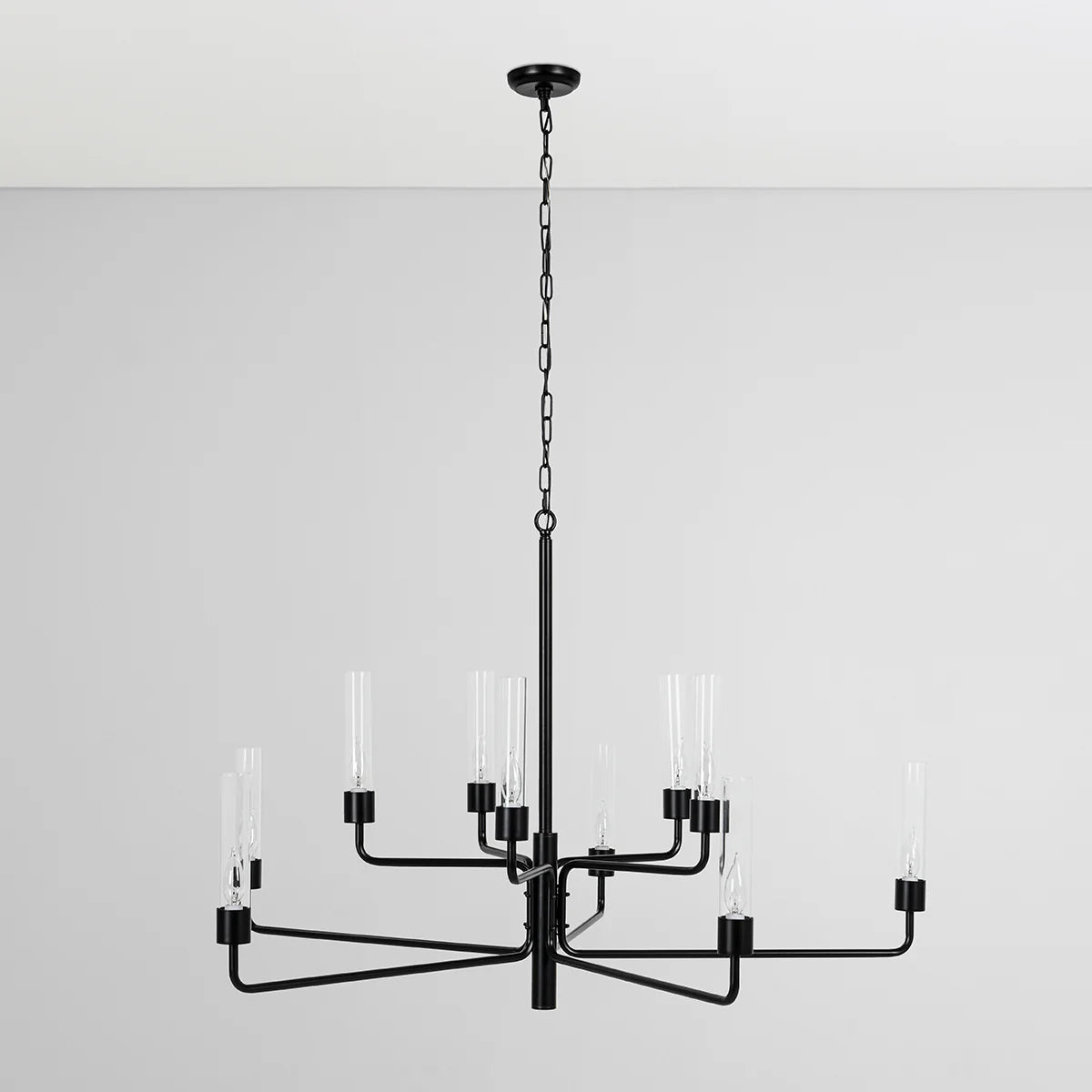 Description: With its iron frame and glass accents, the Madeline Chandelier is a vision of opulence and refinement. Its grand ten-light design fills spaces with brilliance, while its structured silhouette adds timeless sophistication. A true statement piece for spaces that demand attention.