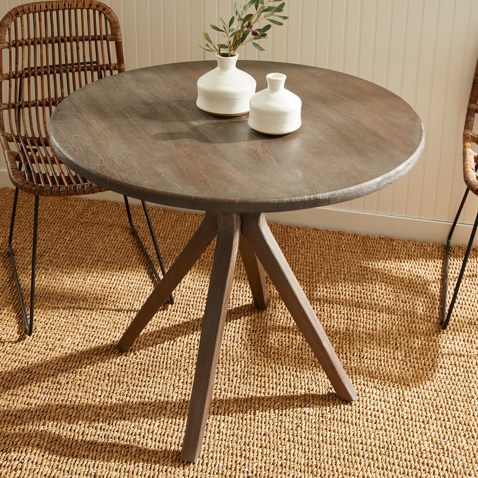 Made of a solid mango wood in a streamlined, mid-century style, the Mercier Café Table is a stylish piece. With a smooth texture and grey wash, it is made for the small, contemporary space.