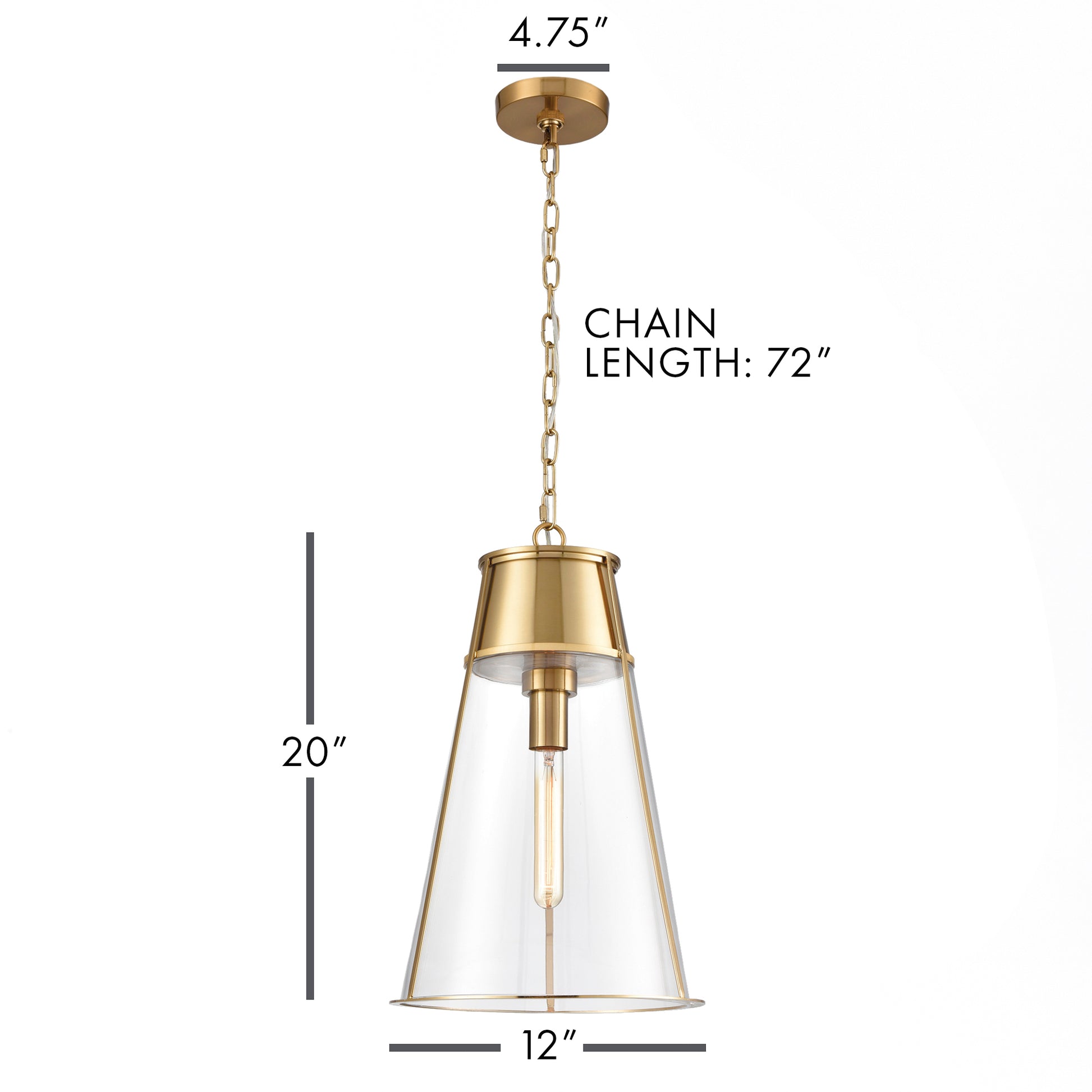 Shade: 12 x 12 x 20 - Chain length: 72" - Canopy: 4.75 x 4.75 x .75
