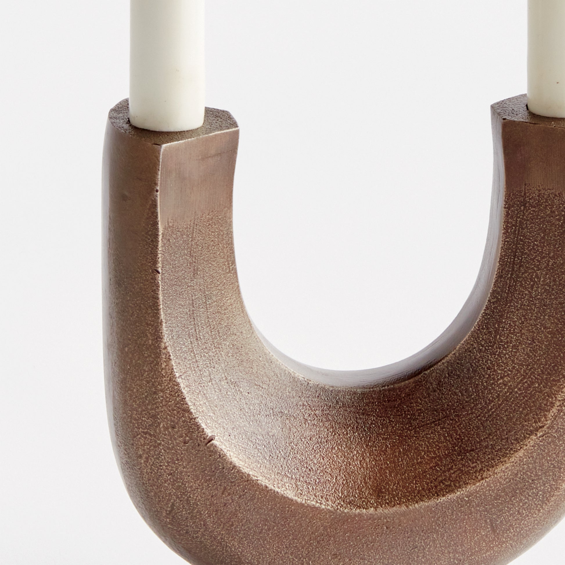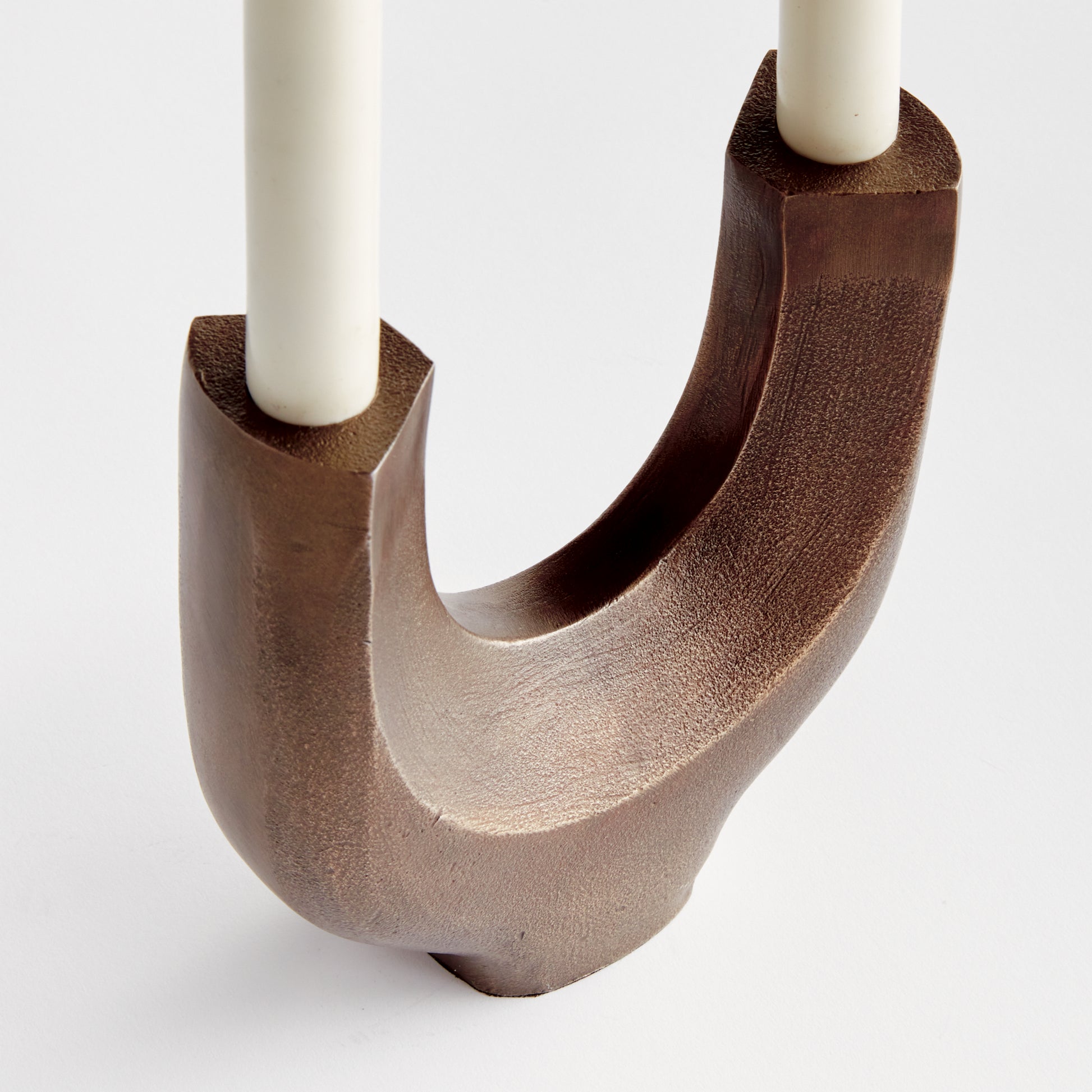 Sculpture or Candelabra? How about both! This sleek, modern candelabra is made to hold two tapers. A handsome, substantial accent for the contemporary space.