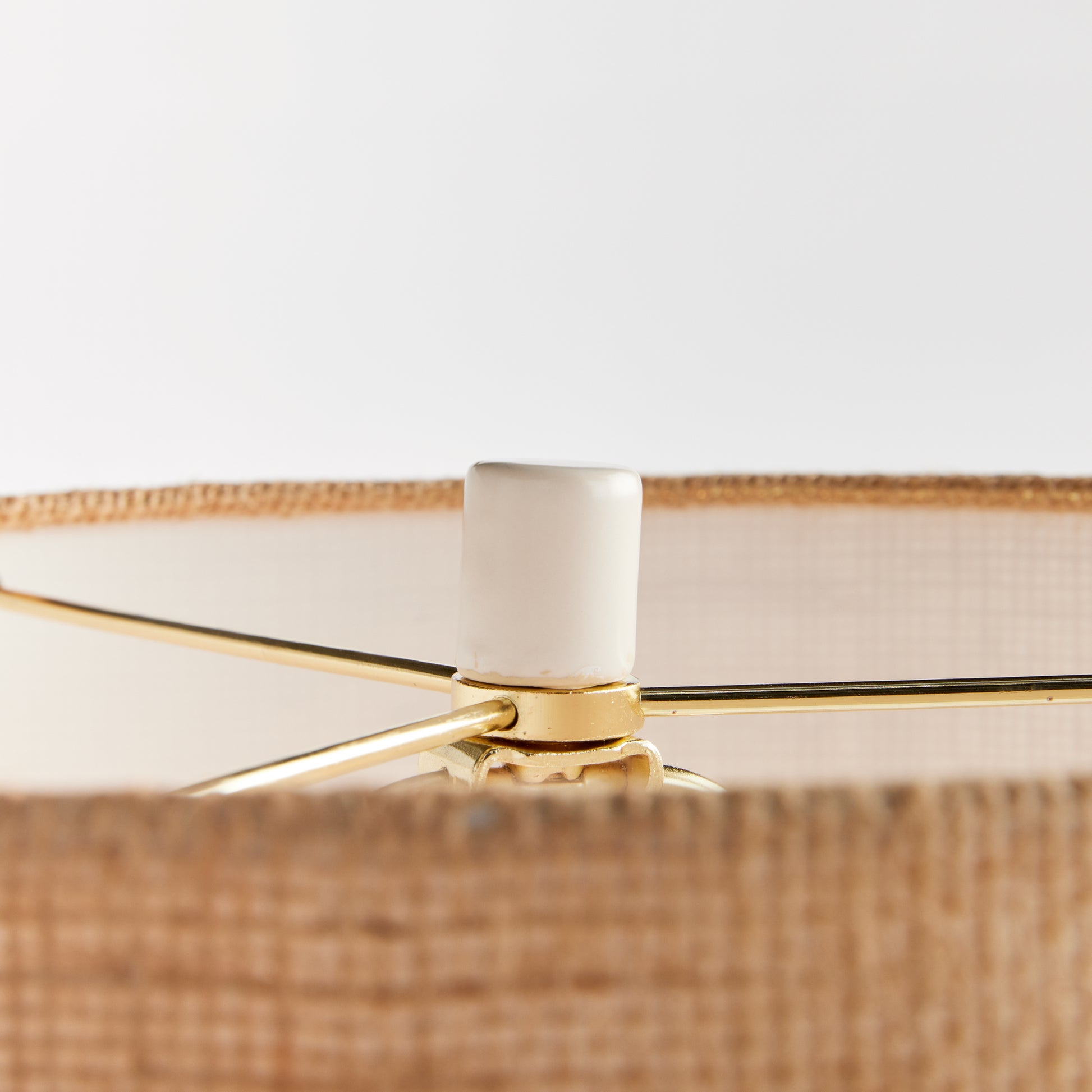 In a stunning detail, the ceramic base has a woven-like texture. It is the defining feature of this gorgeous lamp. The paneled design and grand scale make it a solid focal point in the transitional space.