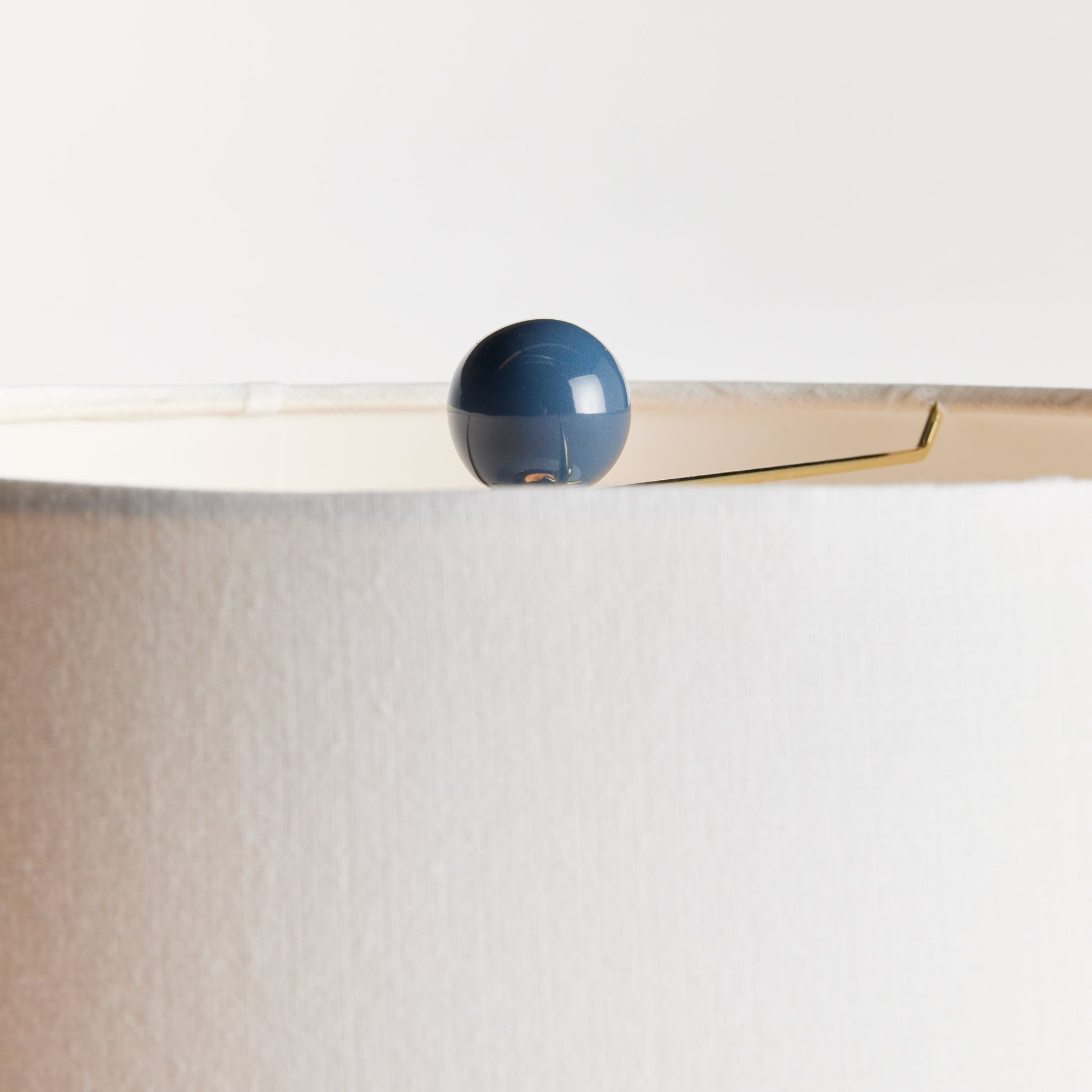 This handsome lamp has a classic silhouette. The body was crated from a centuries old wooden mold. We brought it back to life in a deep blue finish. Topped with a tapered fabric shade, it makes a dynamic, storied lamp for family room, study or bedroom.