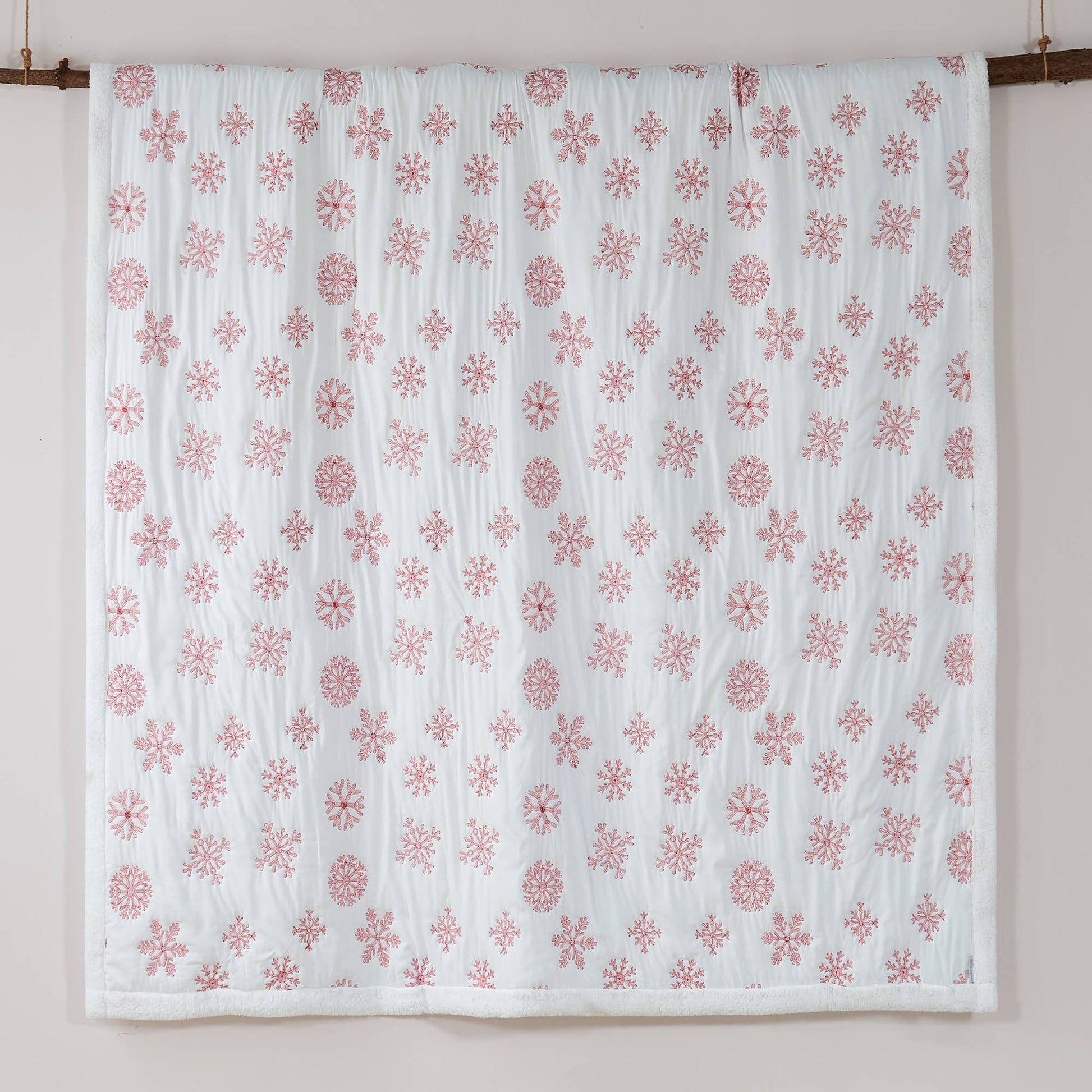 Red Snowflake Sherpa Quilt Set: Natural / King/Cal King