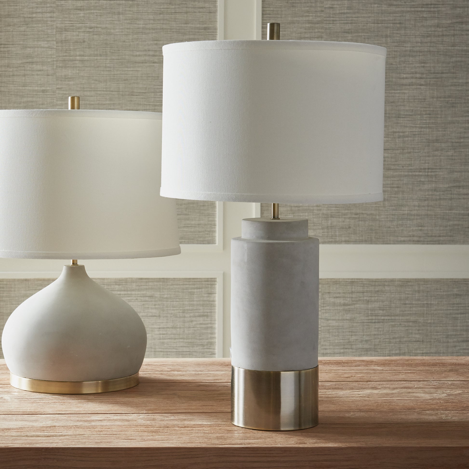 An unexpected mix of cement and brass accents make the Scully Cylinder lamp a stand out piece. The tall, narrow base and tailored shade are well-designed details not to be missed.