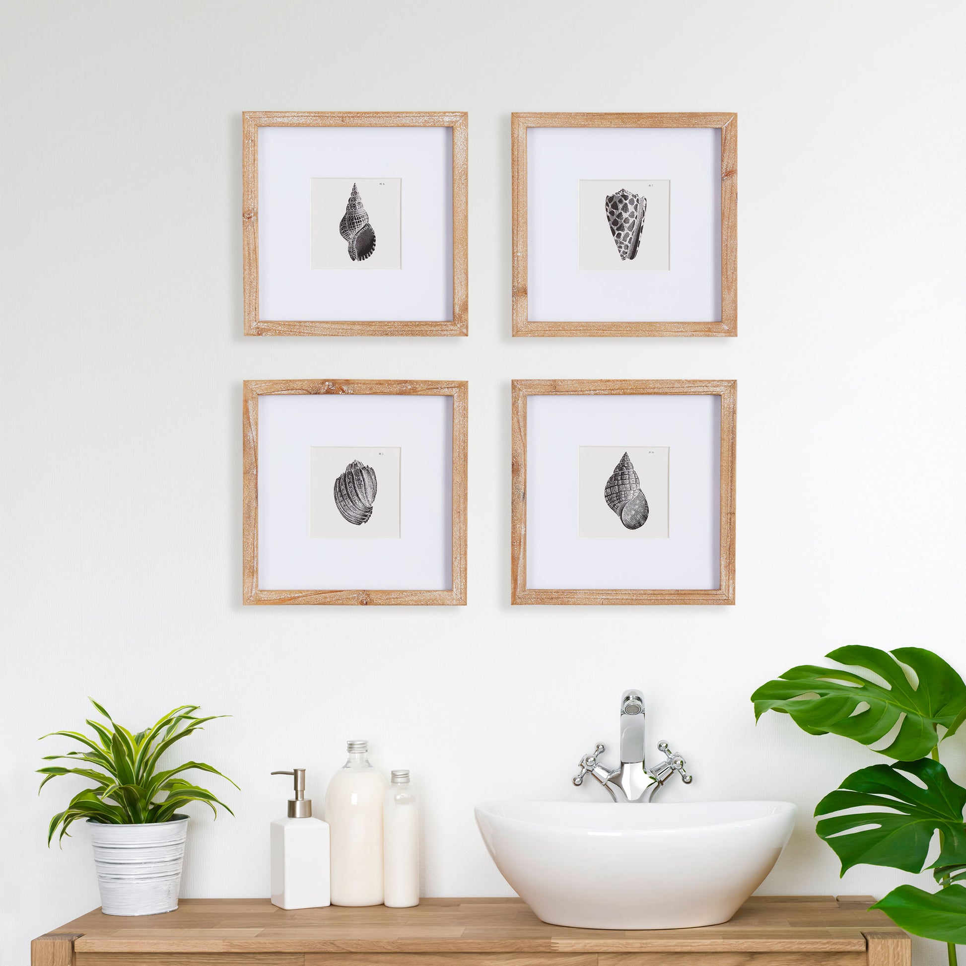When illustrated in black & white, the intricate details of nature's beauty are on full display. Framed out in a natural wood tone, this set of four Seashell Petite Prints make a lovely accent for the coastal setting.