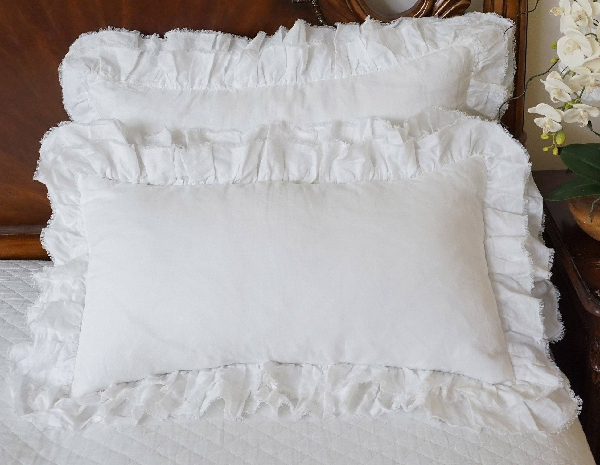 Our Tara Pillow Sham, with its swish dueled ruffle and raw edging, will sit proudly on any bed, finishing it off resplendently. Moreover, Tara can be mixed in seamlessly with many of our other collections.